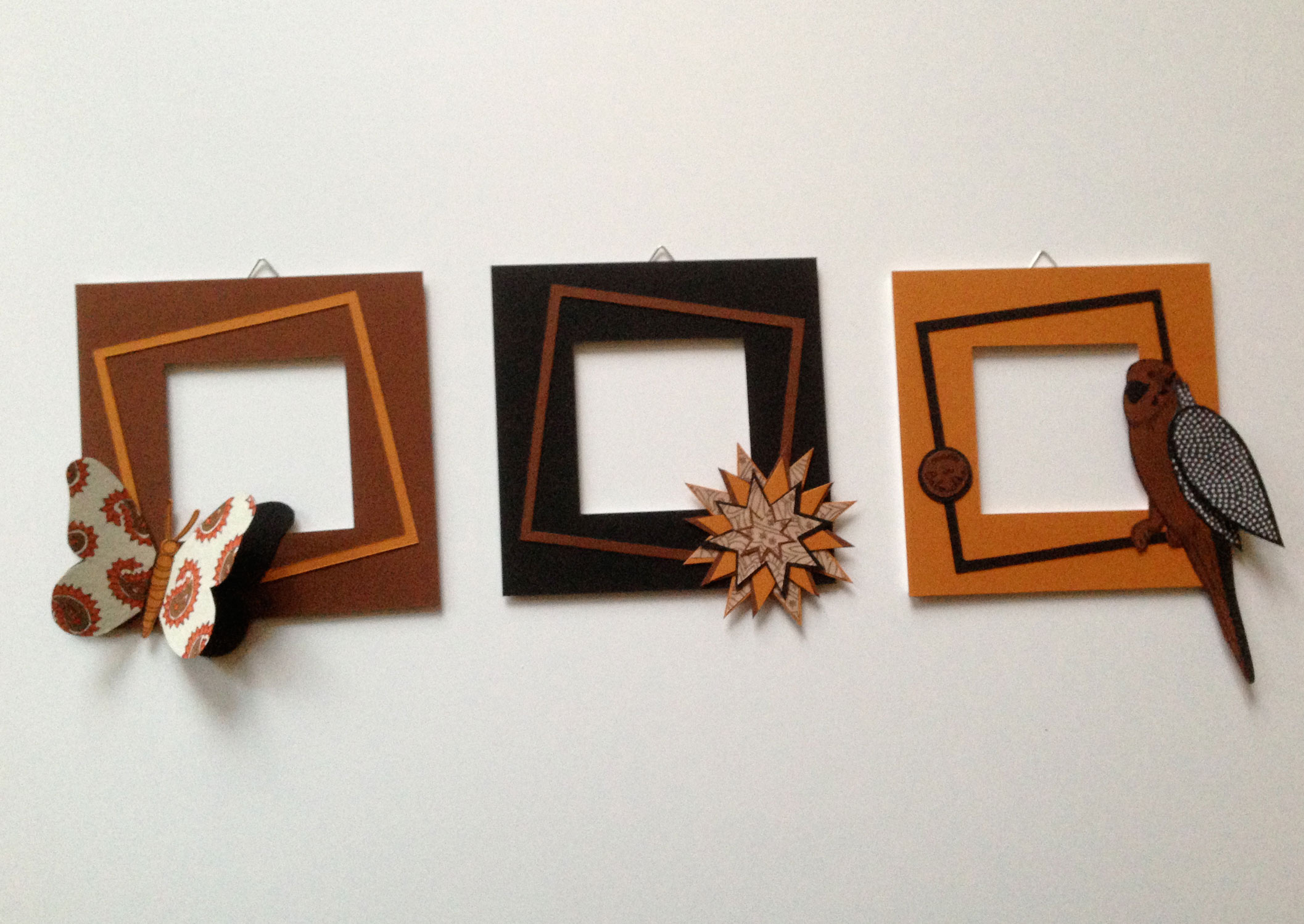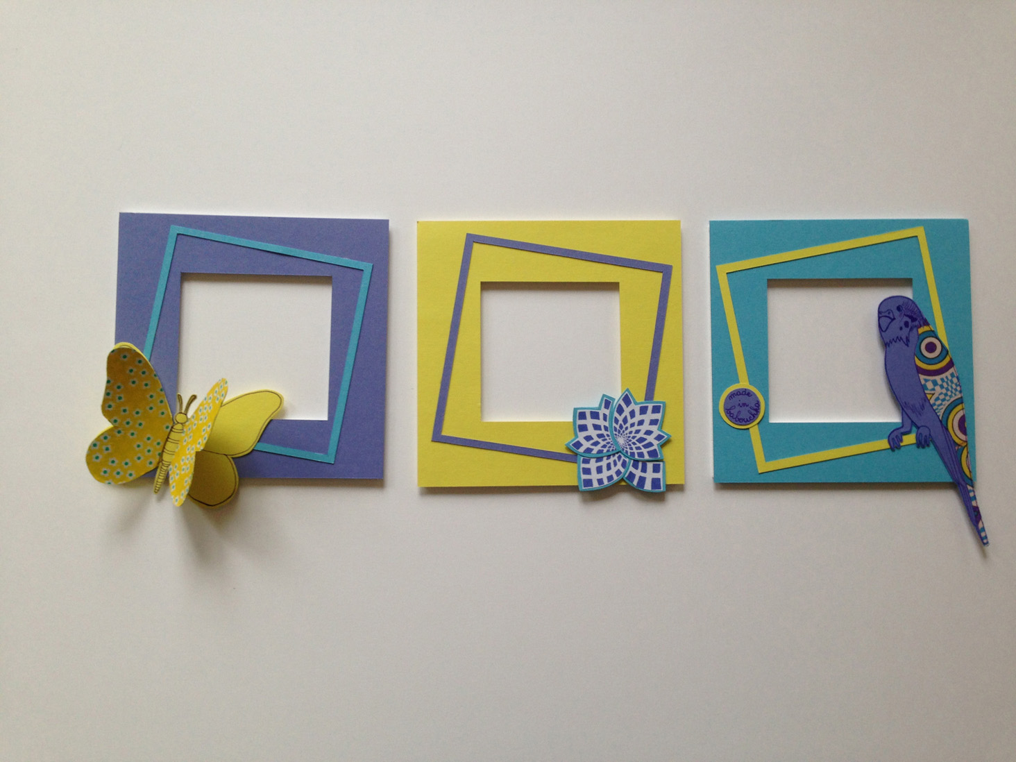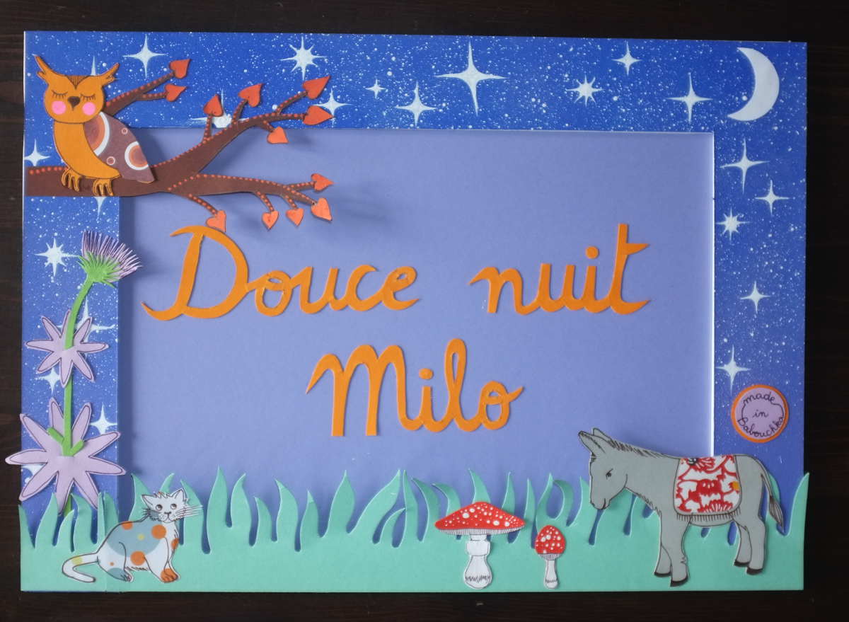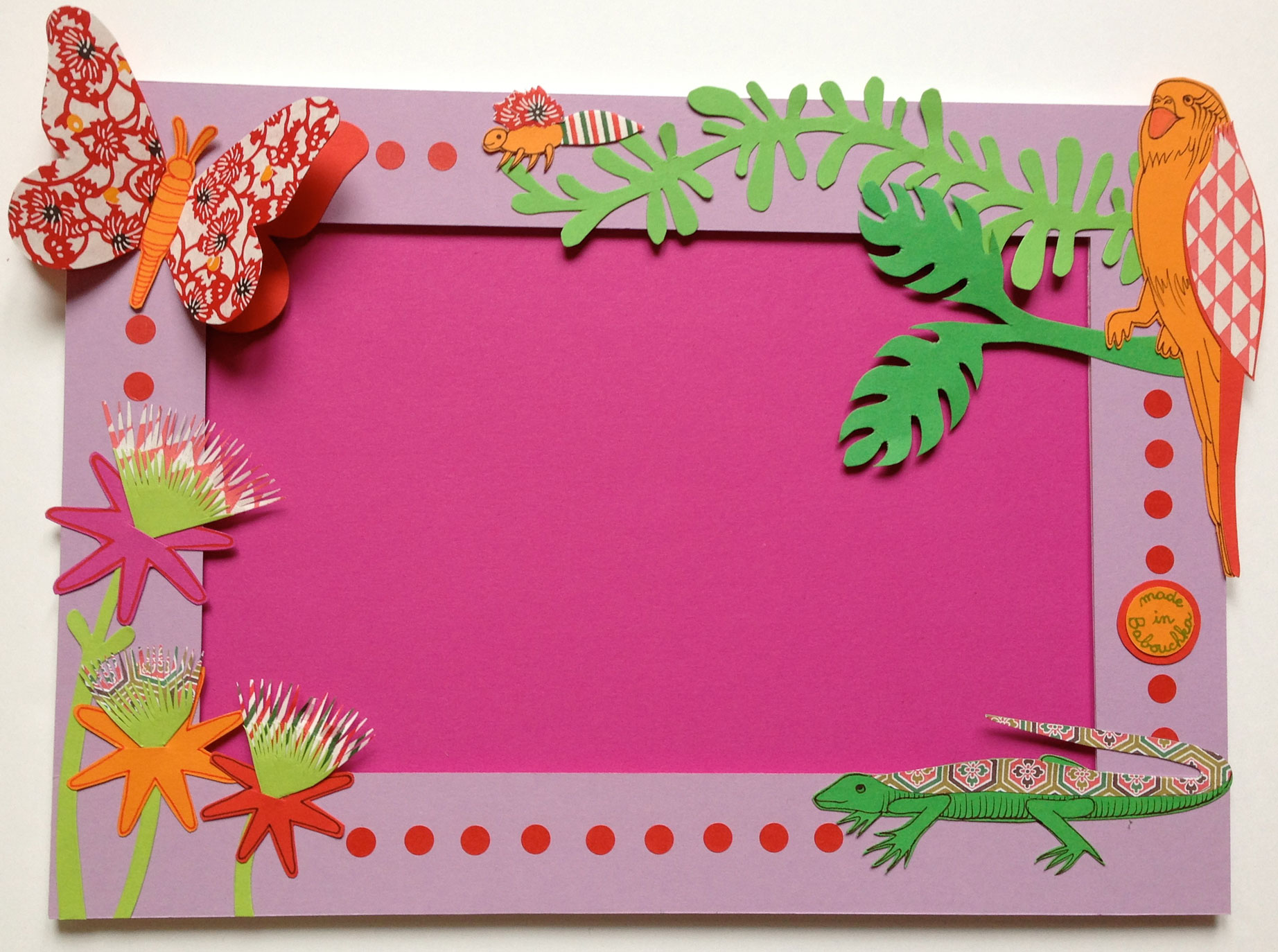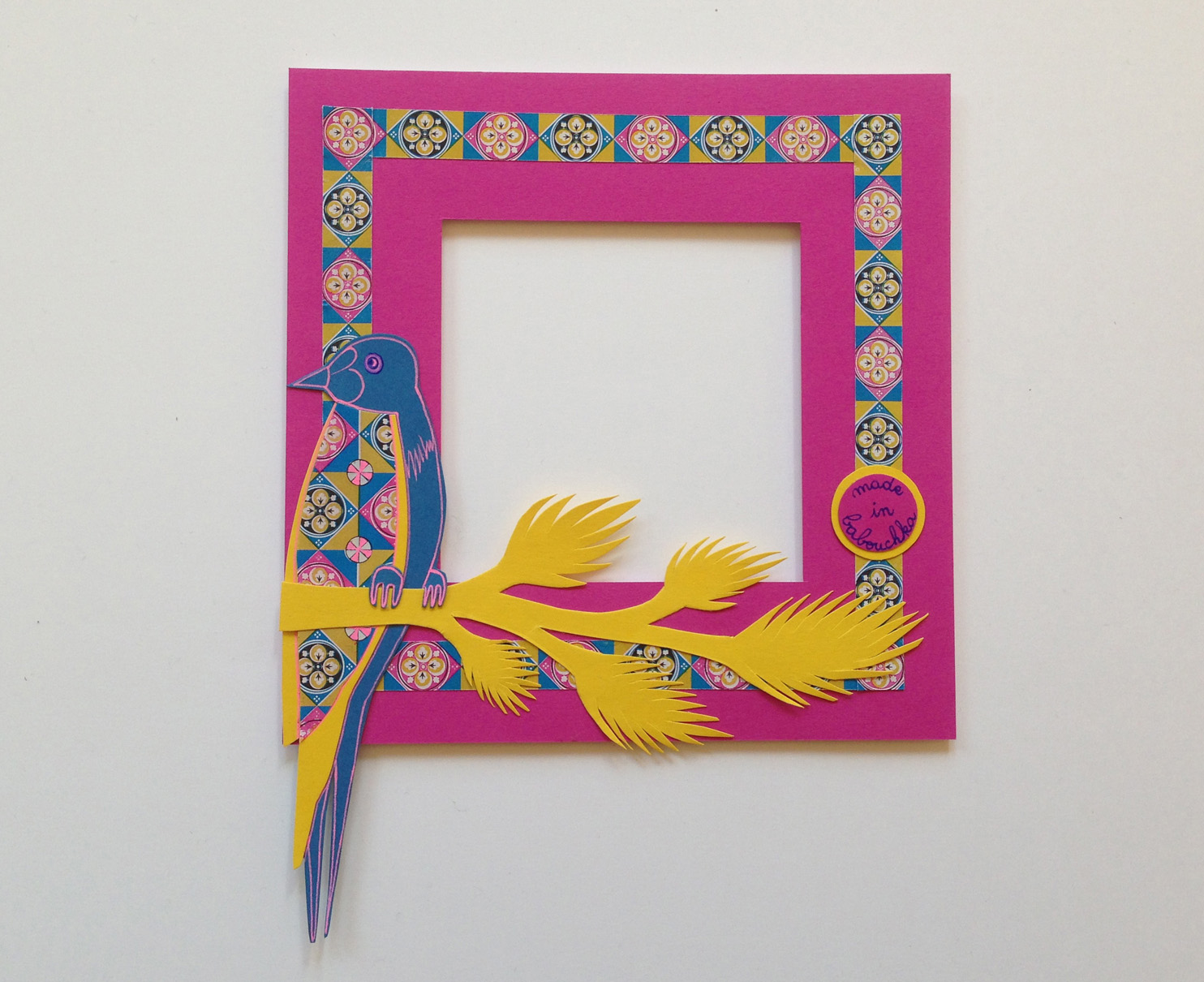 Cadres en papier découpés aux motifs originaux et à l'ambiance bucolique. Disponibles sous 3 formats (cadres triptyques 3x(14x14cm) ; cadre moyen 17x17cm et un grand format de 24x34cm avec possibilité d'y ajouter un texte personnalisé) .
